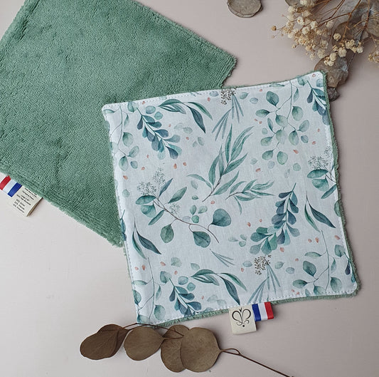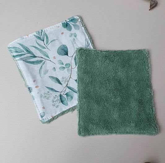 En stock – Lingette lavable eucalyptus en coton & éponge bambou réutilisable