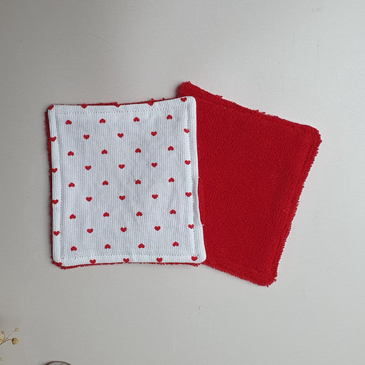 En stock – Lingette lavable coton cœur rouge & éponge bambou rouge réutilisable