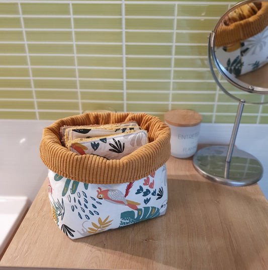 Sur mesure – Corbeille réversible coton & velours | Rangement fait main