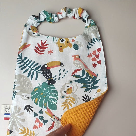 Inspiration – Bavoir maternelle élastique Jungle brodé et nid d'abeille jaune