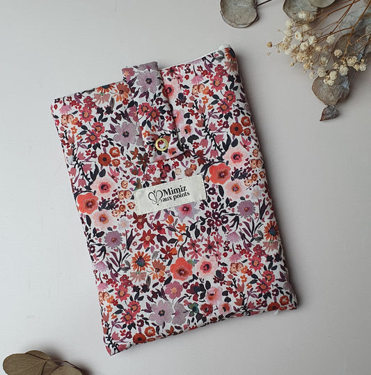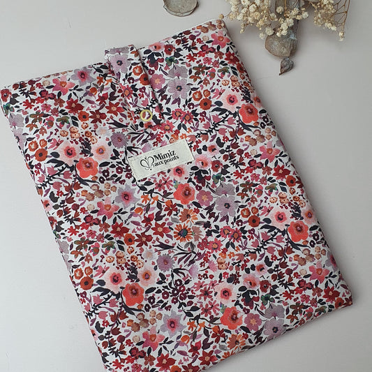 En stock – Housse de livre broché 22×28 cm motif fleuri en coton fait main